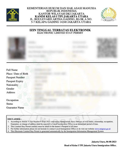 KITAS merupakan dokumen ijin tinggal terbatas yang diberikan kepada warga negara asing yang bekerja di Indonesia ataupun penyatuan keluarga